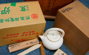 加賀月華の茶杓、万古の皆具、仁清写皆具 他 東京都杉並区でお引越しに伴い、長年大切に保管されておりましたお茶道具、加賀月華の茶杓、万古の皆具、仁清写皆具など他、階段タンスなど大きな家具をお買取させて頂きました。